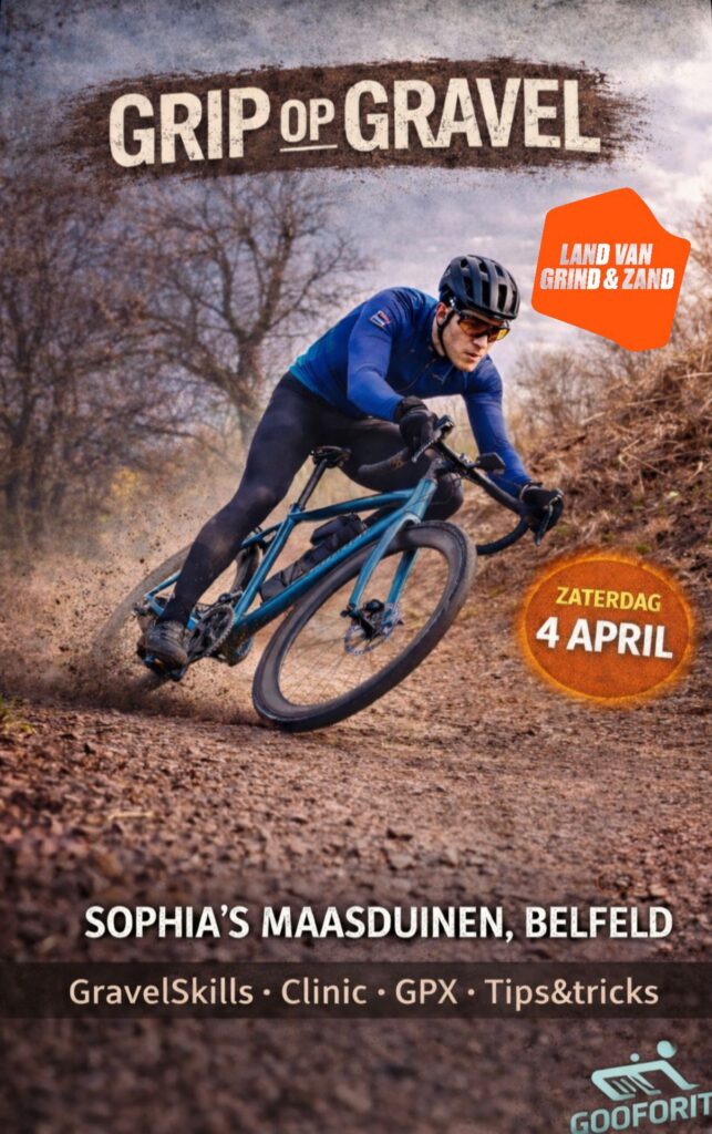 Grip op gravel: “Ontdek de ultieme grip op gravel met Maikel Govaarts, meervoudig Nederlands Kampioen mountainbiken en cyclocross. Verleg je fietsgrenzen en verken onbekende paden, want op een gravelbike hoef je nooit meer te kiezen tussen asfalt en singletracks. Leer de technieken voor bochten, klimmen, en dalen, pas je bandenspanning aan en kies de juiste pedalen. Bereid je voor op avontuur tijdens zijn intensieve clinics!”